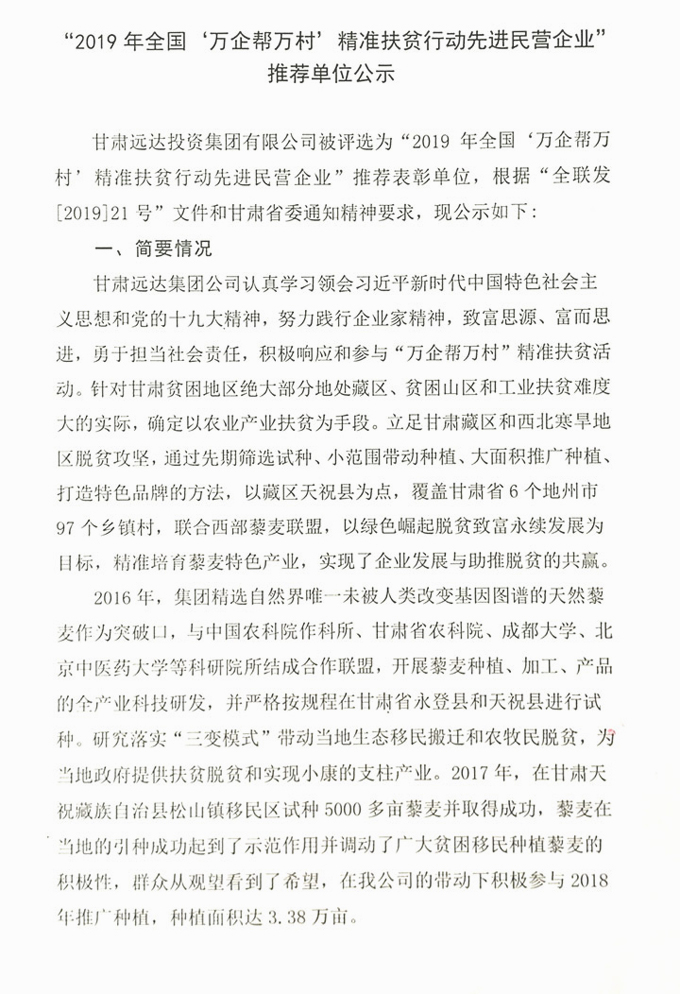 “2019年全國‘萬企幫萬村’精準扶貧行動先進民營企業(yè)”推薦單位公示